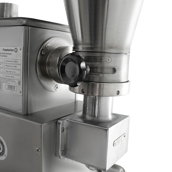 Пельменный аппарат JGL 120-5C (AR) Foodatlas предназначен для производства всевозможных полуфабрикатов, таких как: пельмени, равиоли, клёцки, мини-пельмени, вареники, пирожки. Оборудование специализировано для использования в коммерческих целях на предприятиях общественного питания, ресторанах, супермаркетах, производствах мясных и мучных полуфабрикатов. Разработано с учётом современных требований и нацелено на безопасное, легкое применение. Пельменный аппарат JGL производит изделия из теста, начиненные различной начинкой и имеющие разнообразную видовую форму и габаритные размеры. Форма продукта зависит от используемой вид-матрицы и сменной формующей головки.